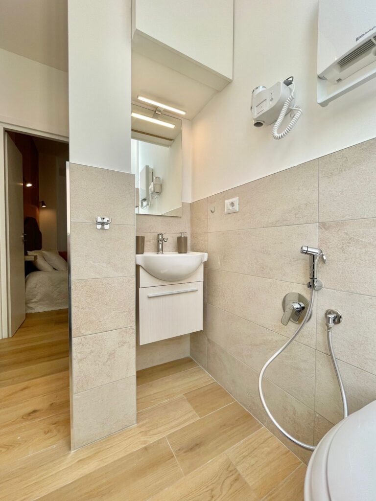 Tutti gli ambienti presentano aria condizionata e nel bagno troverete l’asciugapelli ed i prodotti per l’igiene.
